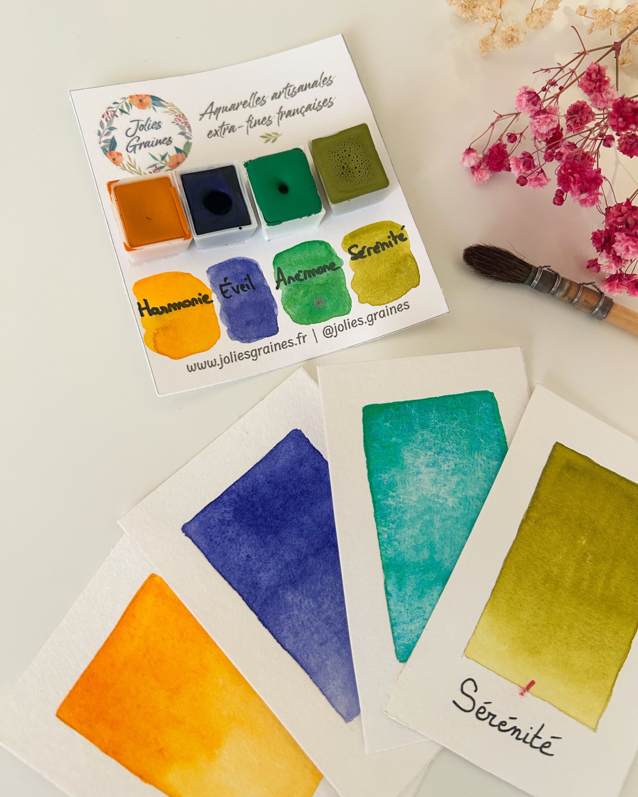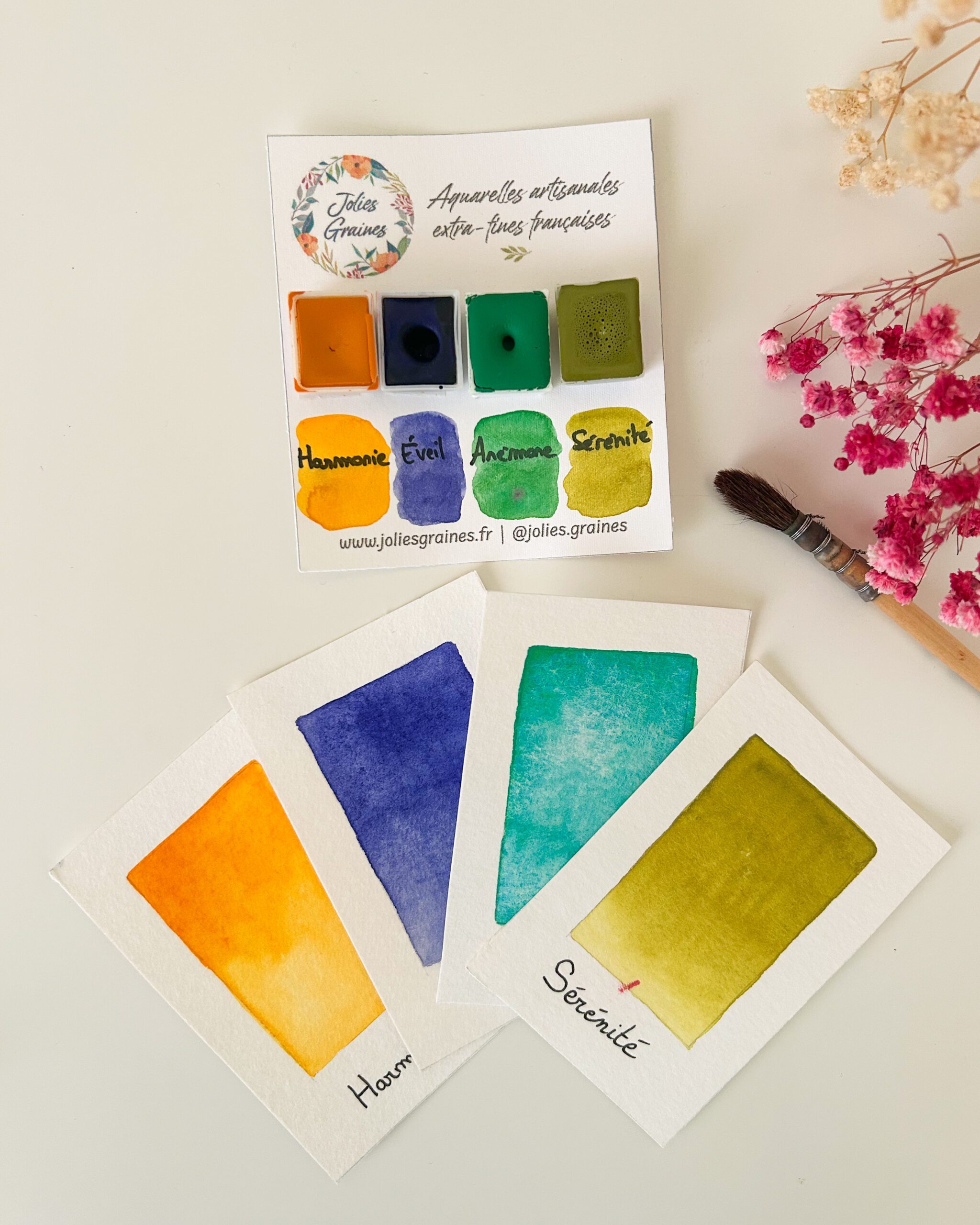 Les aquarelles sont à conserver dans un endroit sec, à l’abri de l’humidité. Les photos des couleurs sont au plus proches de la réalité mais peuvent varier en raison des options d’écran.
